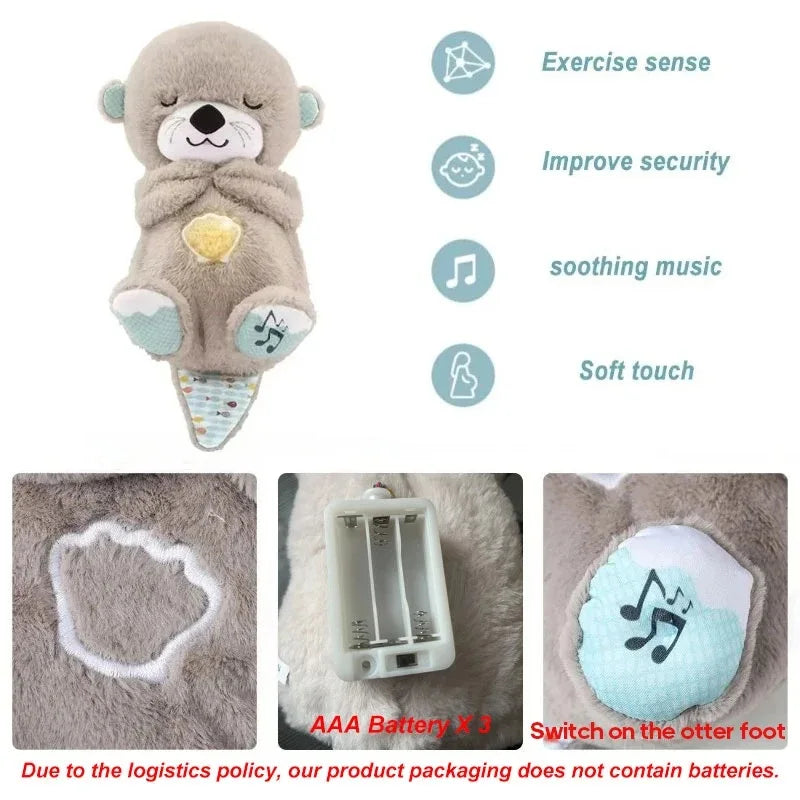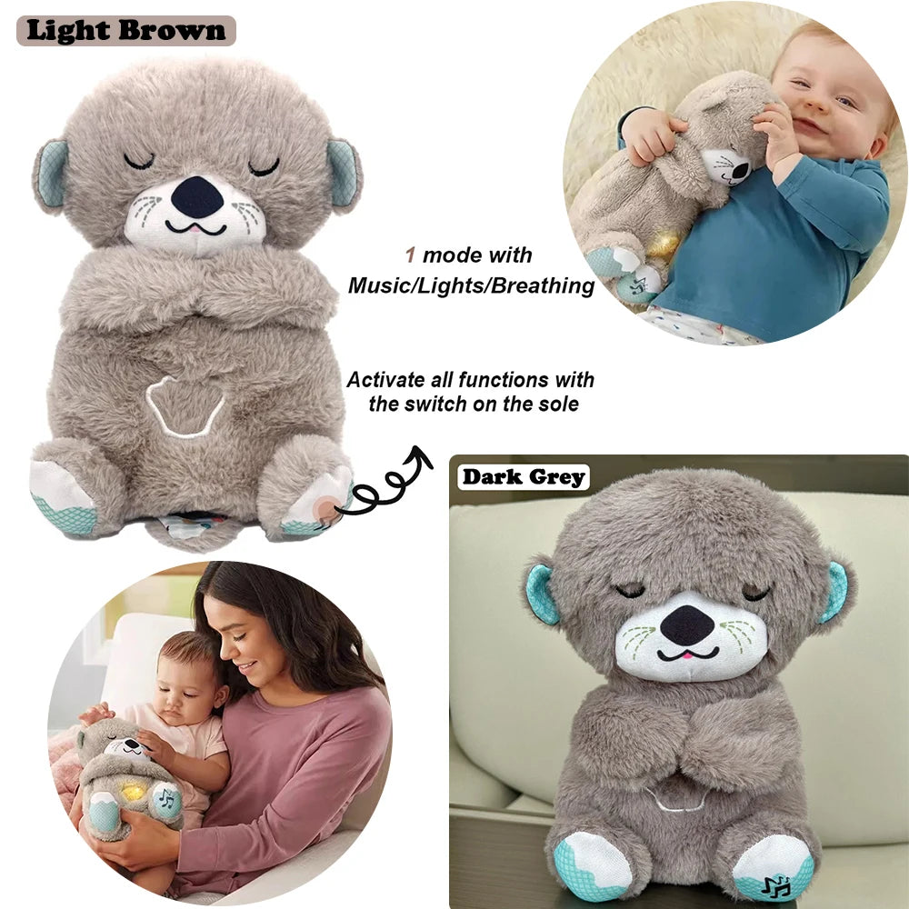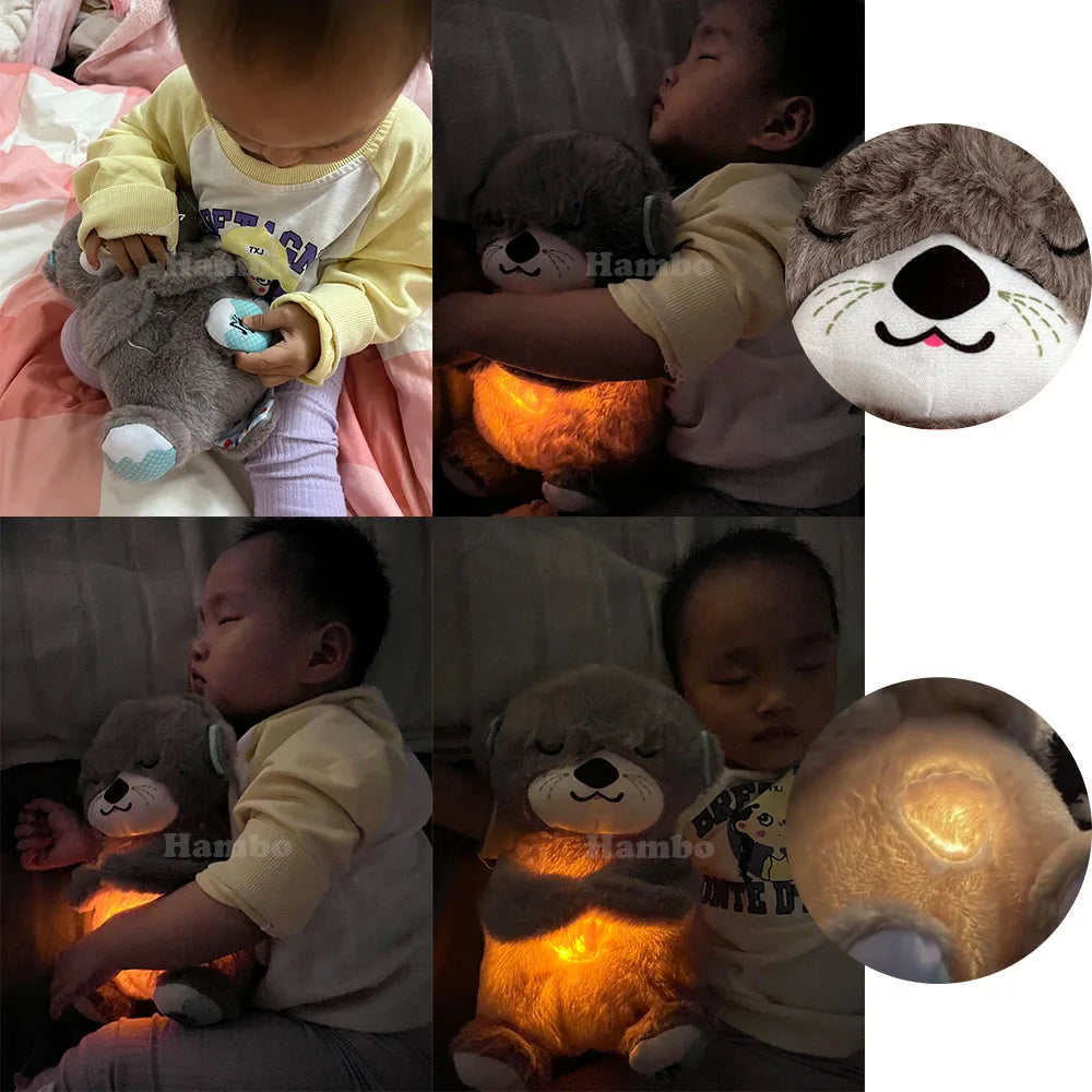 Breathing Otter Plush Soothing Bear Baby Sleep Snuggle Buddy Teddy White Noise Music Sleeping Sound Light Rhythmic Doll Toy Gift